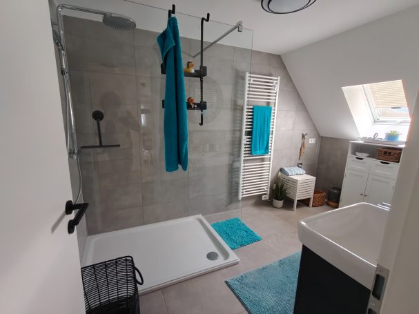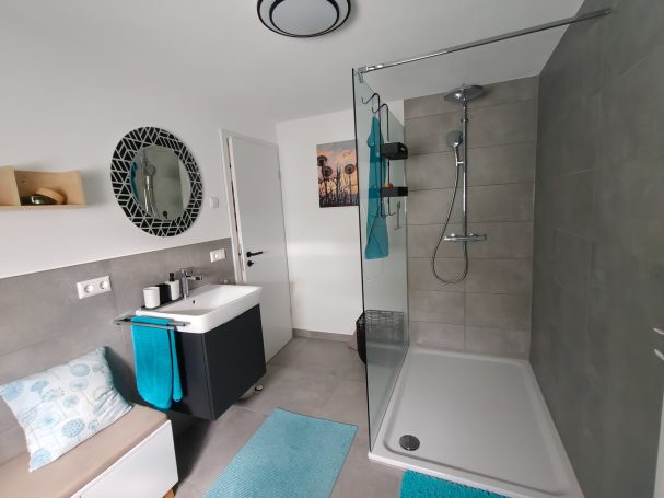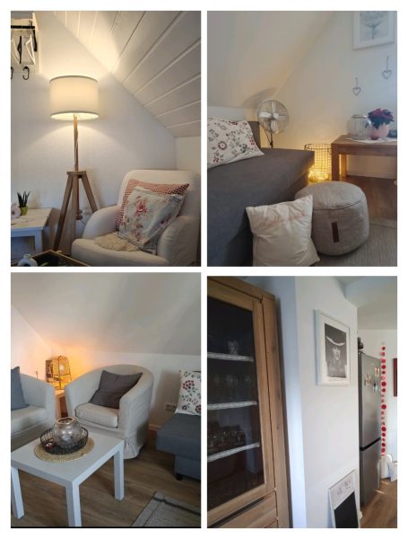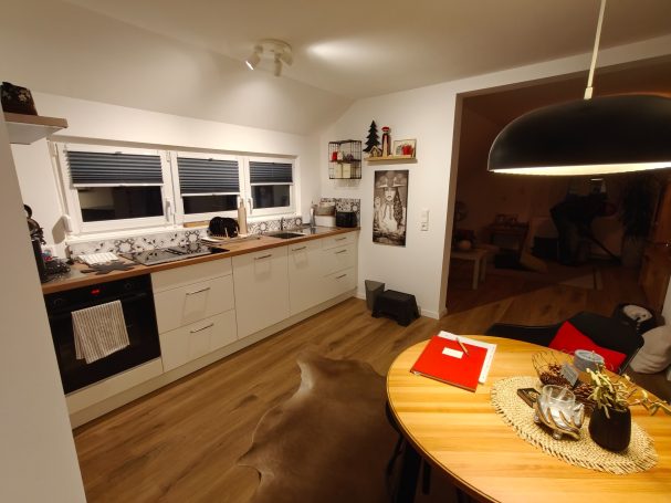 Die Ausstattung des Apartments bietet alles, was man braucht, um sich hier rundum wohl zu fühlen. - Das Wohnzimmer verfügt über ein ausziehbares Sofa, welches ggf. als zusätzliche Schlafgelegenheit genutzt werden kann (die Wohnung eignet sich für maximal zwei Erwachsene und ein Kind), eine Sitzecke sowie Smart TV. Gleich nebenan befindet sich die hochwertige, komplett ausgestattete Küche mit großer Kühl-Gefrier-Kombination, Spülmaschine, Backofen, Mikrowelle und Induktionskochfeld mit Muldenlüfter. Des Weiteren bietet das Apartment ein modernes Bad mit Fußbodenheizung und Regendusche. Auch das gemütliche Schlafzimmer mit Doppelbett lässt keine Wünsche offen und bietet direkten Zugang zum großzügigen Balkon mit Sonnenmarkise, Balkonmöbeln und Sonnenliege. Direkt am Haus steht für unsere Gäste kostenlos ein eigener Parkplatz zur Verfügung.