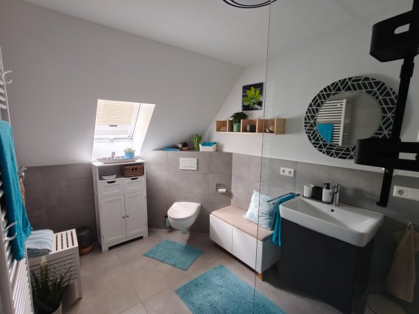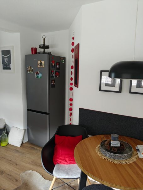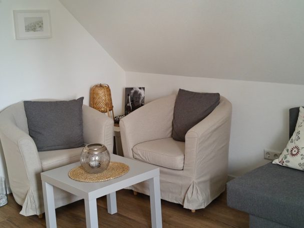 Die Ausstattung des Apartments bietet alles, was man braucht, um sich hier rundum wohl zu fühlen. - Das Wohnzimmer verfügt über ein ausziehbares Sofa, welches ggf. als zusätzliche Schlafgelegenheit genutzt werden kann (die Wohnung eignet sich für maximal zwei Erwachsene und ein Kind), eine Sitzecke sowie Smart TV. Gleich nebenan befindet sich die hochwertige, komplett ausgestattete Küche mit großer Kühl-Gefrier-Kombination, Spülmaschine, Backofen, Mikrowelle und Induktionskochfeld mit Muldenlüfter. Des Weiteren bietet das Apartment ein modernes Bad mit Fußbodenheizung und Regendusche. Auch das gemütliche Schlafzimmer mit Doppelbett lässt keine Wünsche offen und bietet direkten Zugang zum großzügigen Balkon mit Sonnenmarkise, Balkonmöbeln und Sonnenliege. Direkt am Haus steht für unsere Gäste kostenlos ein eigener Parkplatz zur Verfügung.