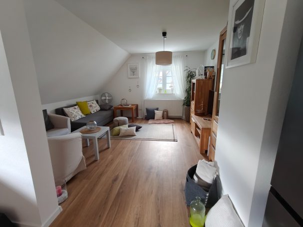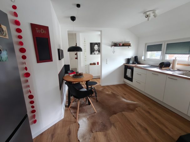 Das Apartment (66m²) befindet sich im 2. Obergeschoss des in 2025 kernsanierten Wohnhauses. Unsere Gäste haben Zutritt über den Haupteingang des Hauses sowie über eine Treppe, welche nach oben direkt zum Eingang der Ferienwohnung führt. -